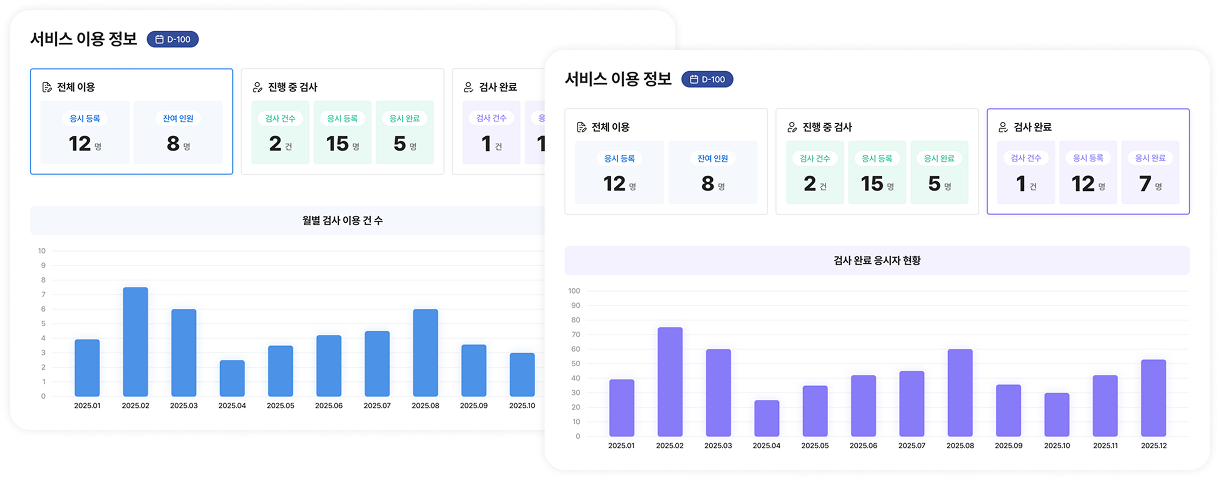 시각화된 대시보드로 인성검사 이용 현황을 한 눈에 확인