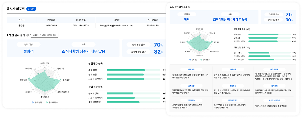 AI 분석을 통한 인성검사 결과를 시각화된 리포트로 제공